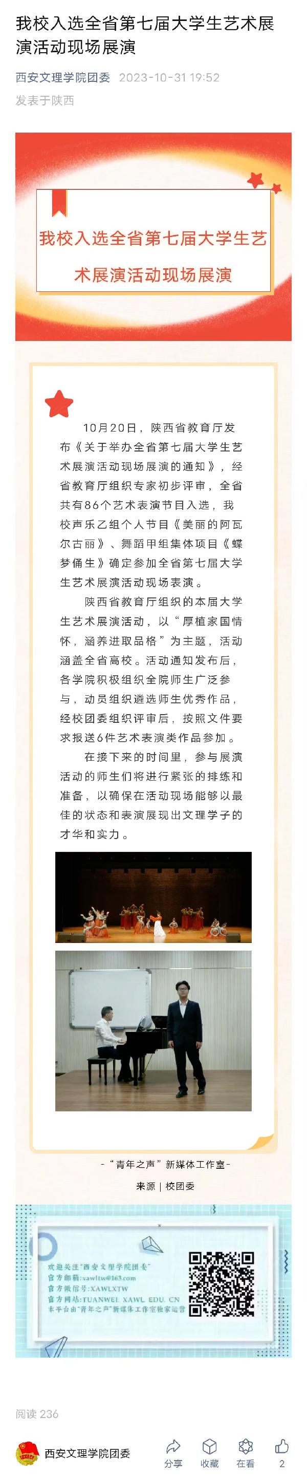 我校入选全省第七届大学生艺术展演活动现场展演